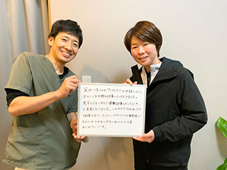 足の痛みが改善されて、タイムが伸び、ケガをすることが減りました。ここで治療してもらってよかったです。
