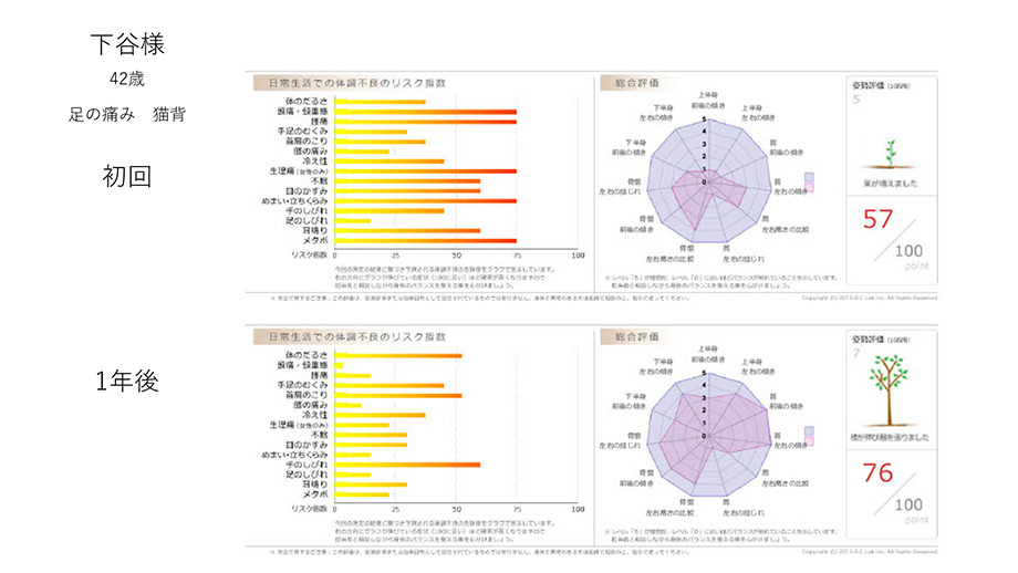 約1年間ありがとうございました!!原因不明だった腰痛も、姿勢もよくなりました。スタッフの方が優しい方ばかりでとても通院しやすかったです。これからもセルフケアを欠かさず行い、健康な体を保っていきたいです。1年間本当にありがとうございました。